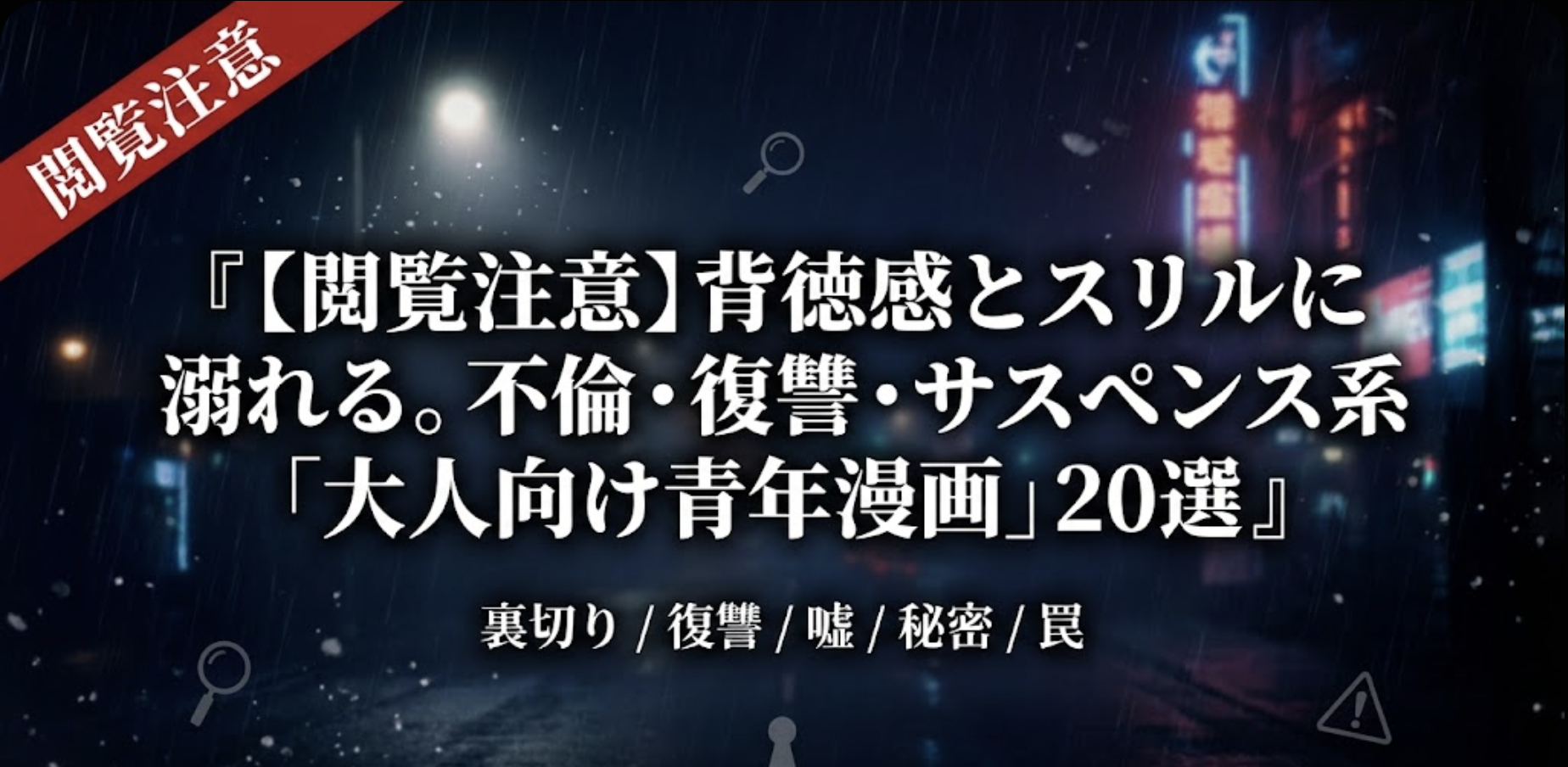 【閲覧注意】背徳感とスリルに溺れる。不倫・復讐・サスペンス系「大人向け青年漫画」20選
